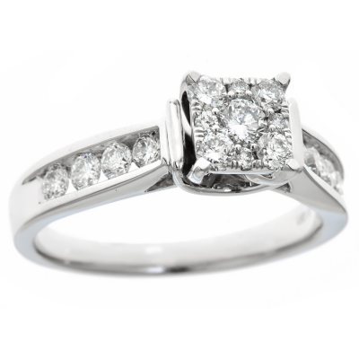 A fresh new look for fashion bridal diamond rings is featured in this 14K white gold design.