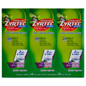 Children's Zyrtec Antihistamine Allergy Liquid, Grape (4 fl. oz., 3 pk.)
