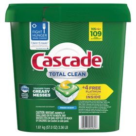 Cascade Total Clean ActionPacs, Dishwasher Detergent, Fresh Scent (105 ct.)