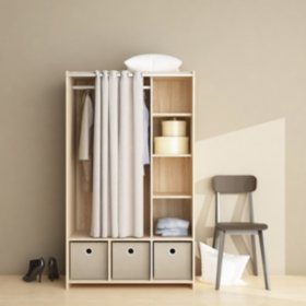 current price: $49.98ShippingPickupFree shipping for Plus Tvilum Large Wardrobe Cabinet with 3 Large Fabric Bins & Curtain Covered Storage
