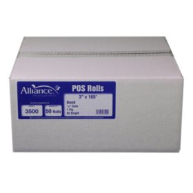 Alliance Bond Paper Receipt Rolls, 3"x165', 50 Rolls