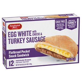 Sandwich Bros. Egg White with Cheese and Turkey Sausage Flatbread Sandwich, Frozen (12 ct.)