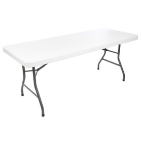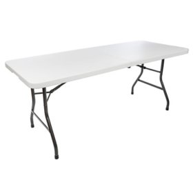 Cosco Deluxe 6' x 30" Fold-in-Half Blow Molded Folding Table, White Speckle