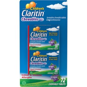 Children's Claritin 24-Hour Non-Drowsy Allergy Grape Chewable Antihistamine Tablet, Loratadine 5 mg (72 ct.)