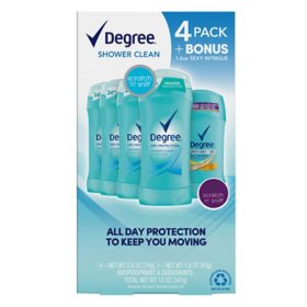 Degree Dry Protection Deodorant, Shower Clean (2.6 oz., 4 pk. + 1.6 oz. Sexy Intrigue)