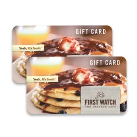 - First Watch Restaurants $50 Value Gift Cards - 2 x $25Instant SavingsEnds Nov 06current price: $37.50OnlineIn stockFree shippingIn club