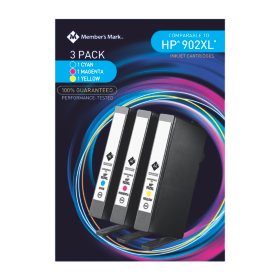Member's Mark Remanufactured HP 902XL (3 pk., 1 Each Cyan, Yellow, Magenta Ink Cartridges)