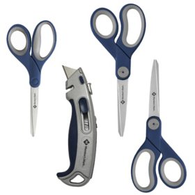 Member's Mark Heavy Duty Scissor & Box Cutter, 4 Piece Set - Choose Color