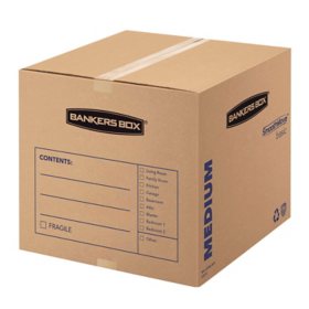 Bankers Box SmoothMove Prime Medium Moving/Storage Boxes, Kraft (18 3/4" x 18 1/8" x 16 5/8", 8 ct.)