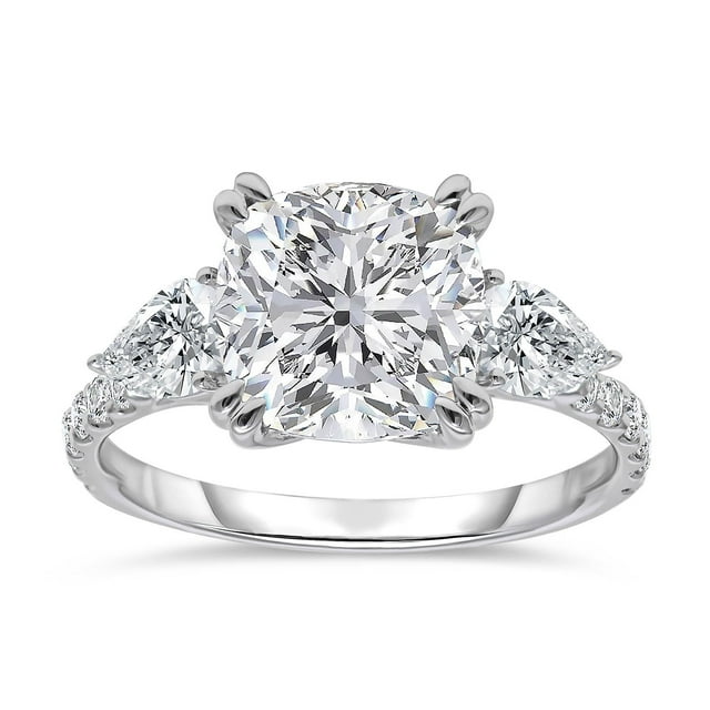 4.00 C.T.T.W. Lab Created Cushion Cut Center with Pear Cut Side Diamond Ring in 18K White Gold4 00 C T T W Lab Created Cushion Cut Center with Pear Cut Side Diamond Ring in 18K White Gold4 00 C T T W Lab Created Cushion Cut Center with Pear Cut Side Diamond Ring in 18K White Gold4 00 C T T W Lab Created Cushion Cut Center with Pear Cut Side Diamond Ring in 18K White Gold4 00 C T T W Lab Created Cushion Cut Center with Pear Cut Side Diamond Ring in 18K White Gold