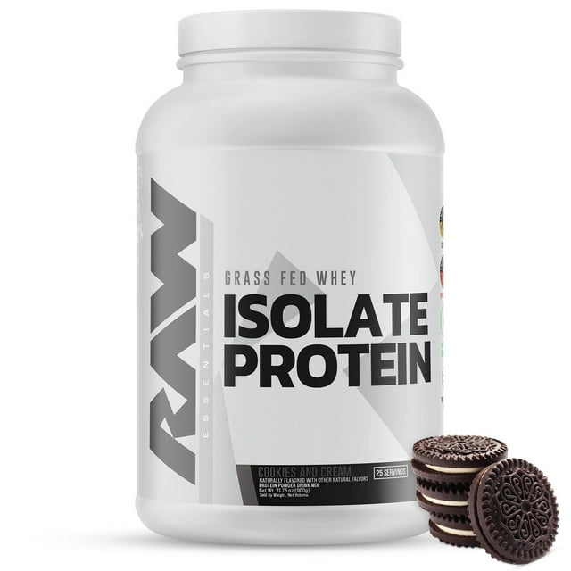 RAW Nutrition 26g Whey Isolate Protein Powder, Cookies and Cream, 1.97 lbs.