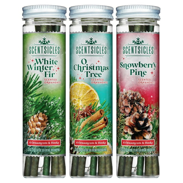 Scentsicles 3-Pack Scented Stick Ornaments - White Winter Fir, O Christmas Tree, and Snowberry Pine