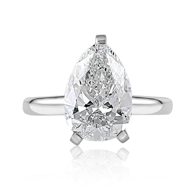 Lab Created Pear Cut Solitaire Diamond Ring In 18K Gold