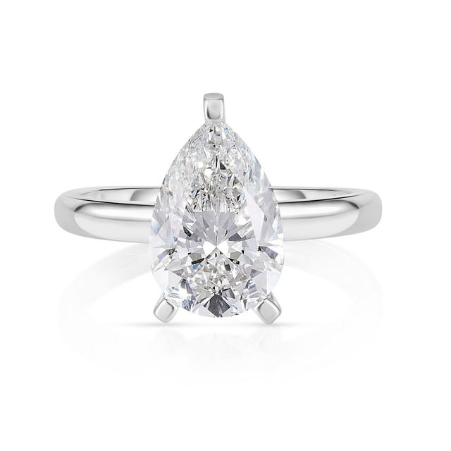 Lab Created Pear Cut Solitaire Diamond Ring In 18K Gold