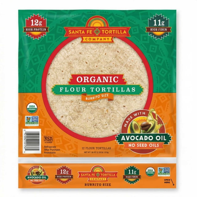 Santa Fe Tortilla Company Organic 10" Burrito Flour Tortillas with Avocado Oil, 12 ct.