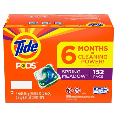 Tide Pods Laundry Detergent, Spring Meadow (4 bags, 38 pacs each, 152 Loads Total)