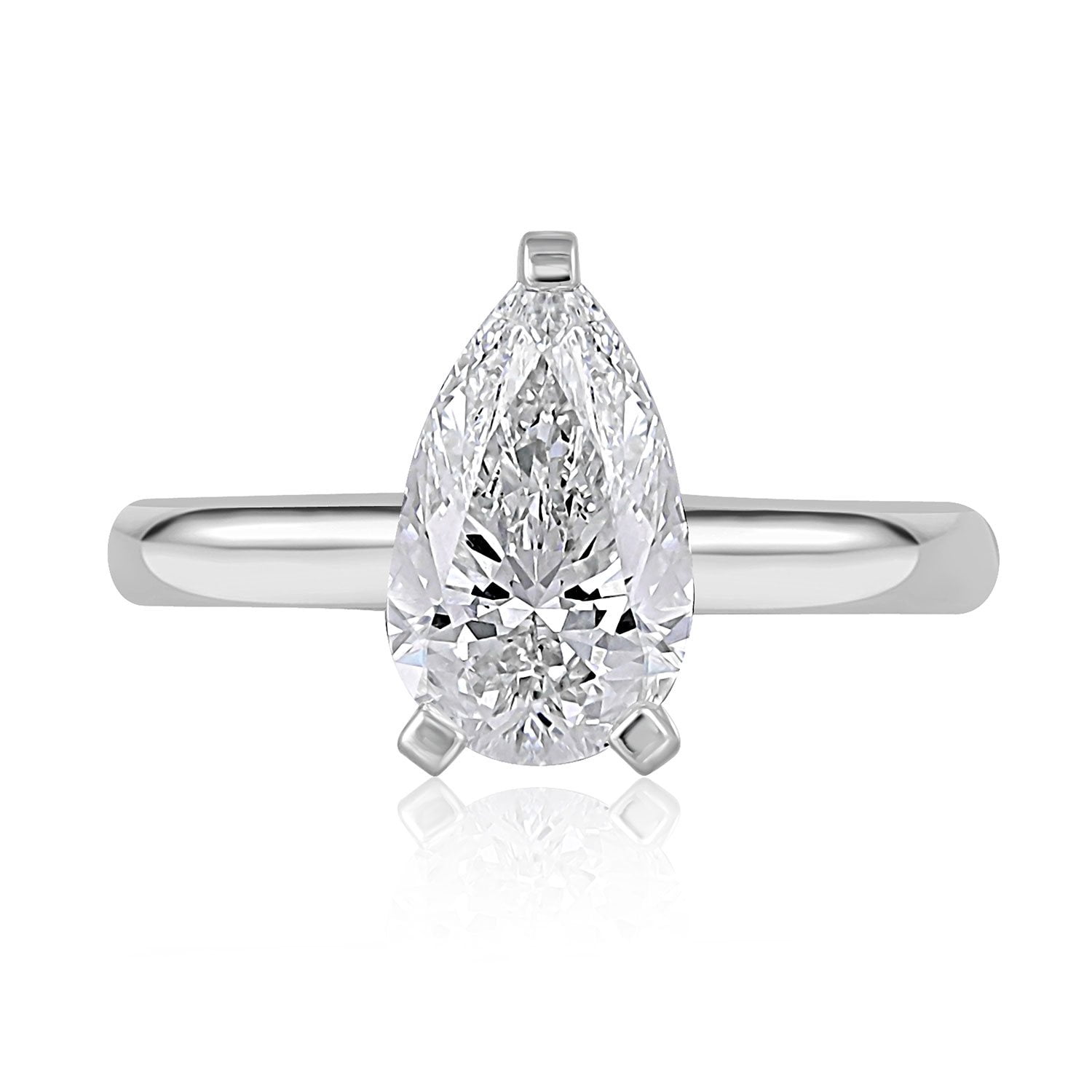 This is one of the most beautiful rings I've ever seen. The shape of the pear is rather narrow and long which makes it really unique. The quality of the diamond is amazing and it shines so brightly at every angle. The simplicity of the band makes the diamond really stand out. The ring is very comfortable to wear too.