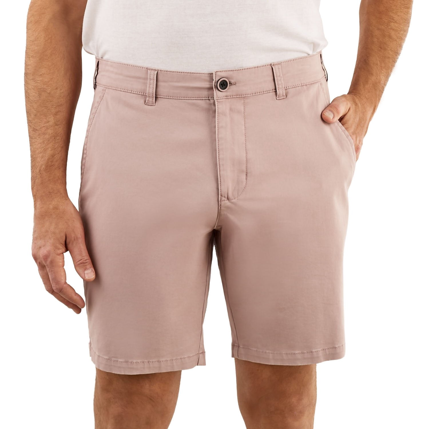 Great fit and comfortable. Soft fabric. Looks like shorts will be running a bit shorter in length this season. So, this one is in tune with the latest trend and sits above the knee.